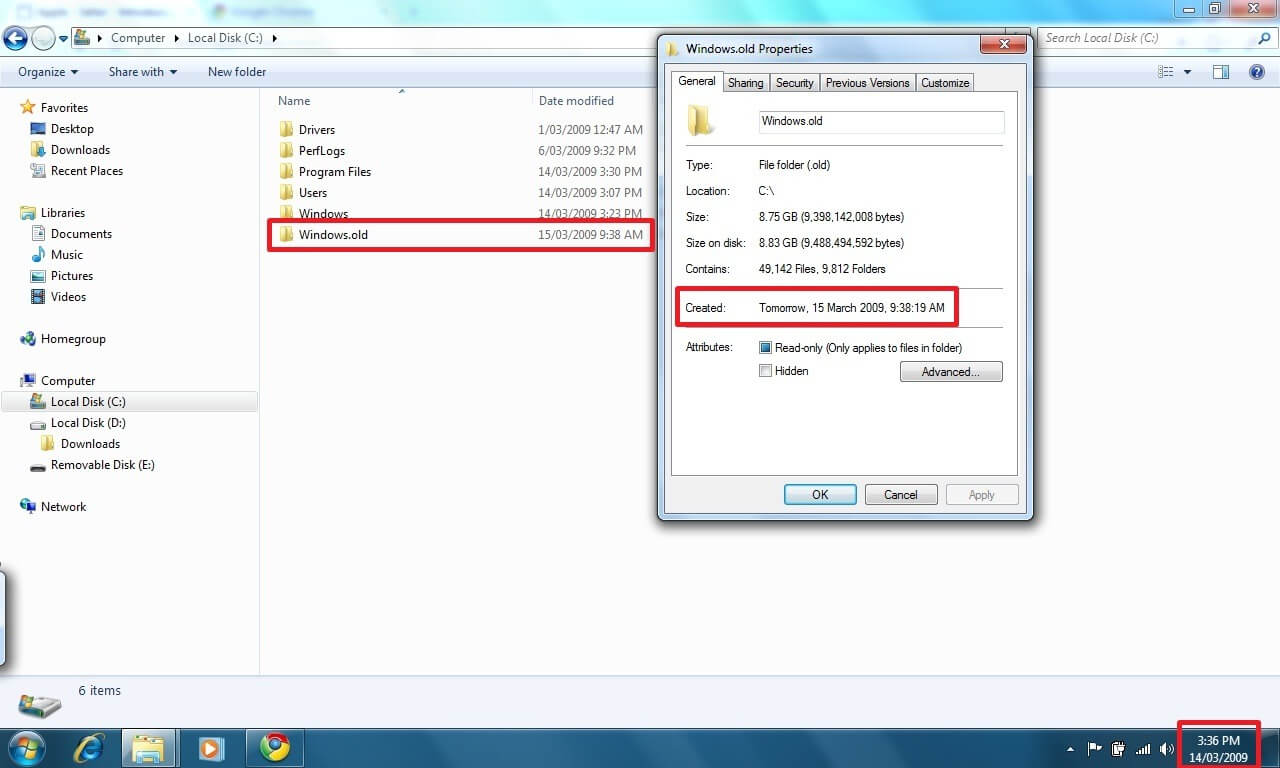 Here is a screenshot of the archived Windows folder, apparently Microsoft has implemented some alien technologies we are not aware of that magically bend time!