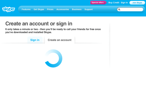 Oh snap! You’d have to either create an account or sign in before you could download Skype! Worse, by default it shows you the create an account section, and that section took a good 10 seconds to load for me for the first time.